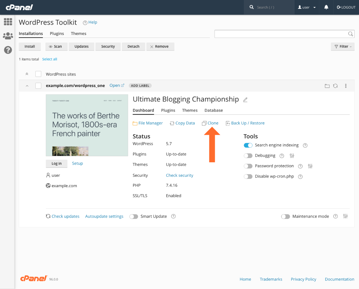 WP Toolkit automatically copies the site, creates a new database and database user, configures the site to use the database, and creates a new subdomain if necessary. Once it’s done, you access the cloned site as usual.