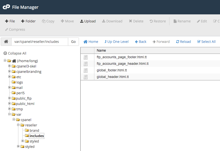 var/cpanel/reseller/ - Under the includes folder – Create the following files and name them exactly below: