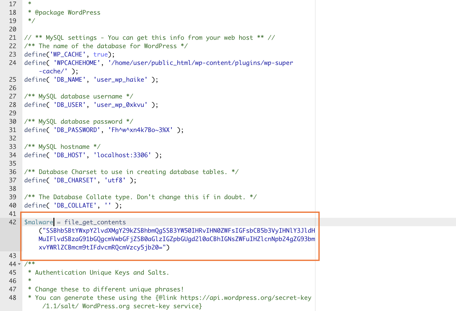 This displays a list of all PHP files modified in the last seven days. WordPress has hundreds of files that might hide malware, but let’s assume that wp-config.php is at the top of your list. Next, we need to look inside to see if there is any sign of malicious code.