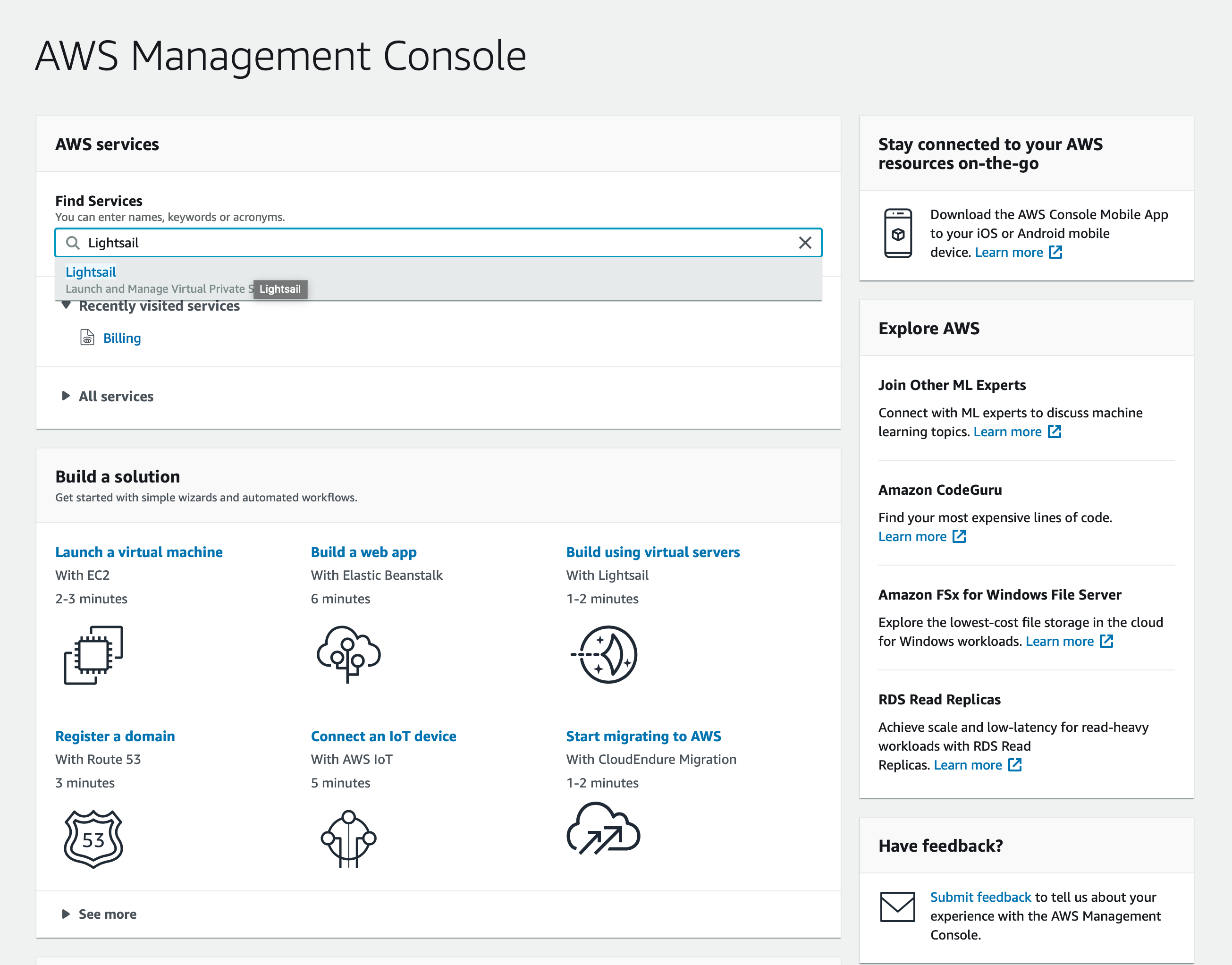 - AWS Lightsail account: Create or login to Amazon Lightsail.