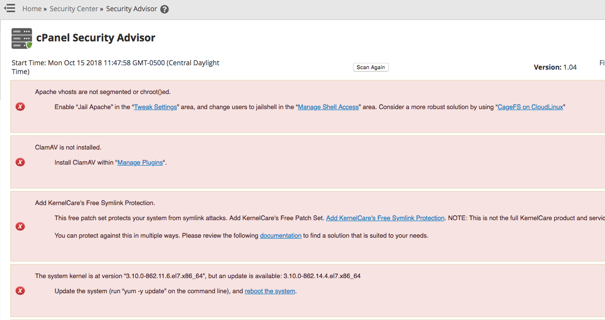 - Configuring cPanel Security Advisor