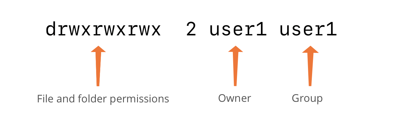 We’re interested in the first, third, and fourth columns. The second column shows how many links a file has, which isn’t related to permissions.