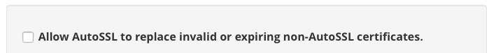At the bottom of the page is the “Allow AutoSSL to replace invalid or expiring non-AutoSSL certificates” option.