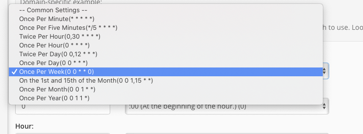 To simplify configuration, we include a drop-down menu with common settings such as Once Per Week or Once Per Month.