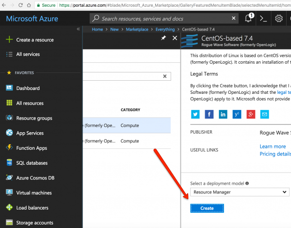 After doing so, a new box will display with suggestions as to machines and images of machines to deploy. We are going to use the top search box to search for “CentOS 7.” Please refer to the screenshots for additional guidance.
