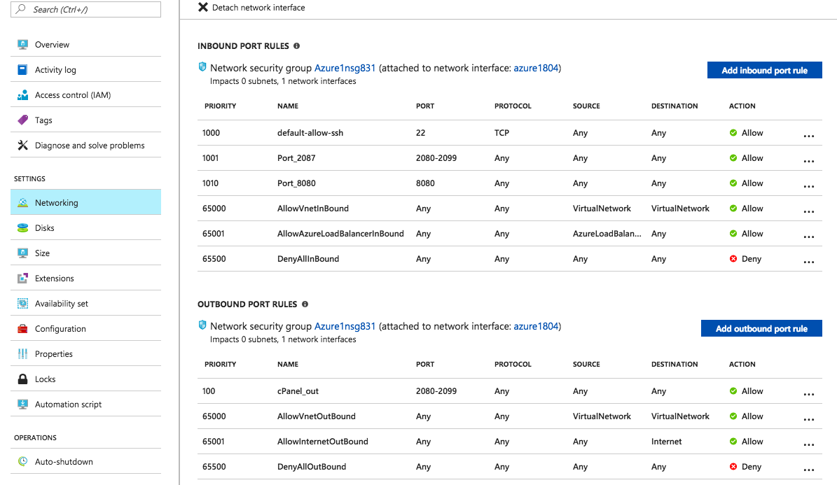 cPanel & WHM will be accessible once the installation is finished. In order to access the ports that the cPanel and WHM interfaces use, we will need to make changes to the Azure instance’s firewall preferences. This can be done by going to your Azure dashboard and then on the left-hand side, clicking on the “Networking” tab.