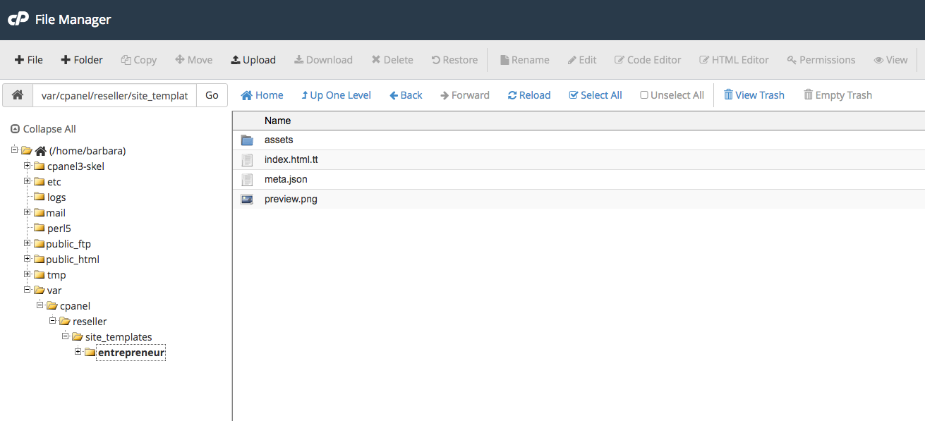 To publish your template, simply copy your template files along with any additional files you’d like to include such as CSS, fonts, etc. into the appropriate directory on your cPanel & WHM server: